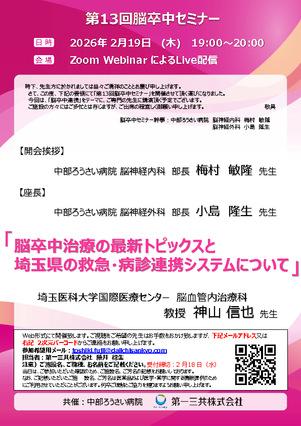 • 第13回脳卒中セミナー開催のご案内 2月19日(木)