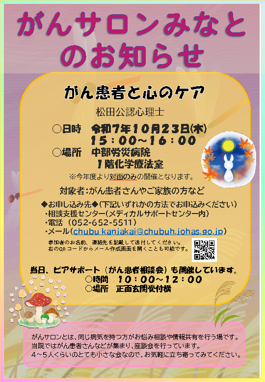 • がんサロンみなと開催のお知らせ 2025年10月23日(木)