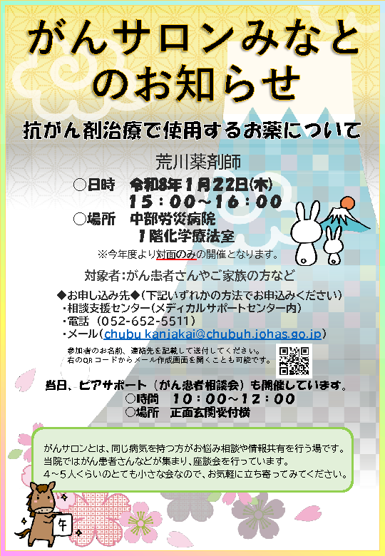 • がんサロンみなとのお知らせ 2026年1月22日(木)