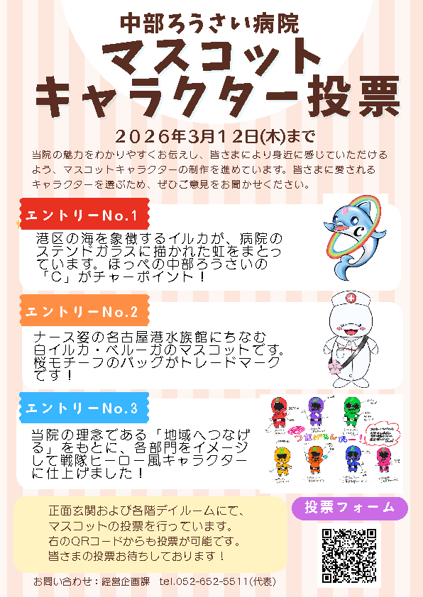 中部ろうさい病院 マスコットキャラクター投票